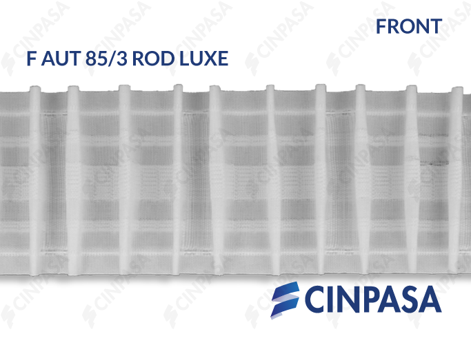 SERIE FRUN AUT PRES HILOS. We manufacture white automatic pencil pleat tape with filament loops for rods. Highly practical pleat tape with loops. Available as reinforcement or automatic pleat tape. White curtain tape for fine fabric or transparent curtains for rods, curtains for home décor, curtains in children's bedrooms, etc.